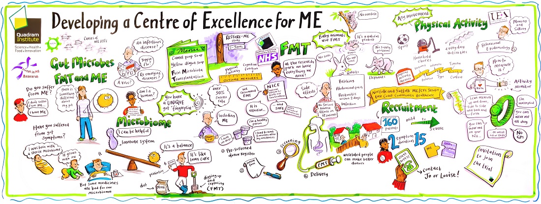 The day highlighted the planned clinical trial being conducted at the Quadram Institute. The trial is called RESTORE-ME.It is perhaps not realised that this clinical trial is the only clinical trial for ME happening in UK at this time - and one of only a few in the world.
