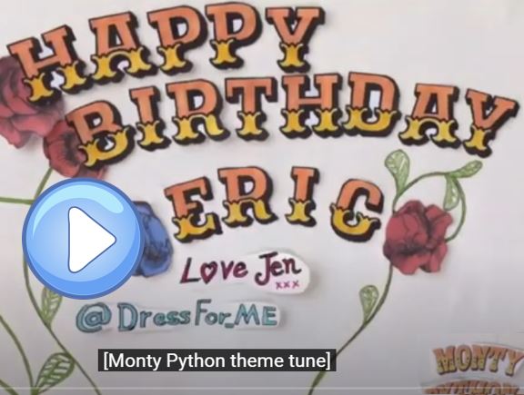 She previously made a video to celebrate the birthday of Monty Python's Eric Idle (click the centre of the images to the right).