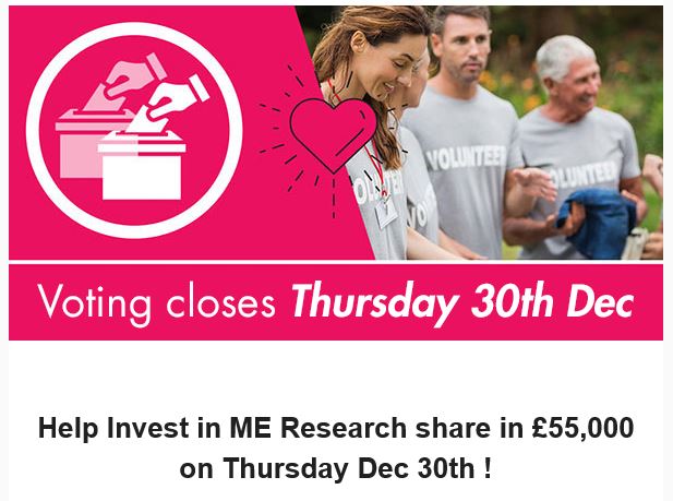 Thanks to all of our supporters and everyone who has been voting for Invest in ME Research in the various awards being granted throughout the year.