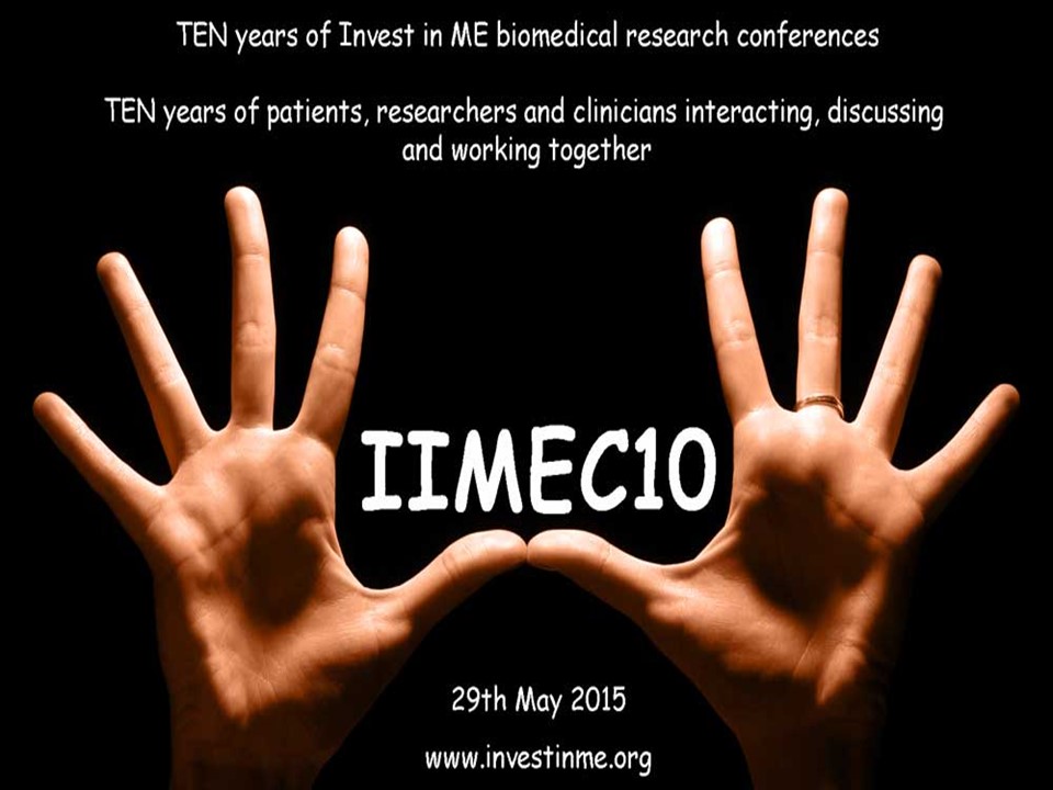 I was privileged to attend the 10th Invest in ME Research conference in London on 29th May 2015 following on from the 2-day colloquium attended by 60 invited delegates from around the world. Participants from 17 countries were welcomed to the conference opening by Invest in ME and the chair was then taken by Dr Ian Gibson .