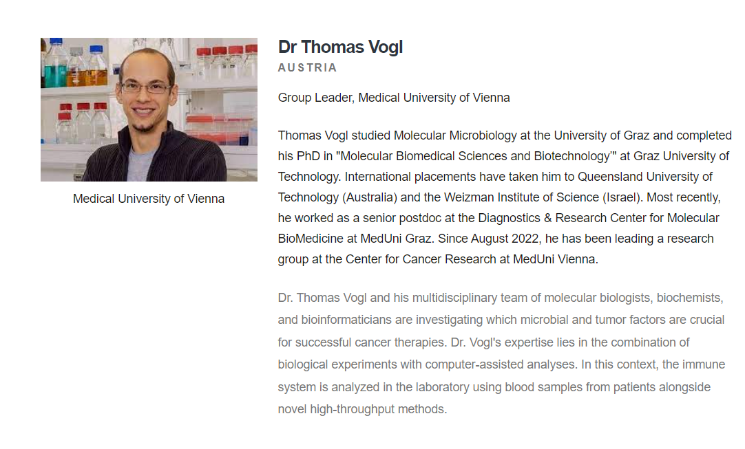 Dr Thomas Vogl, Group leader at Medical University of Vienna, Austria