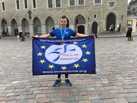 Mike will be taking the EU ME Marathon flag with him around Europe.
