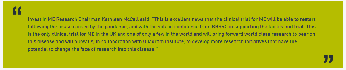 - UK Charity Invest in ME Research grants funding for continued research into ME, including a clinical trial at the Quadram Institute.