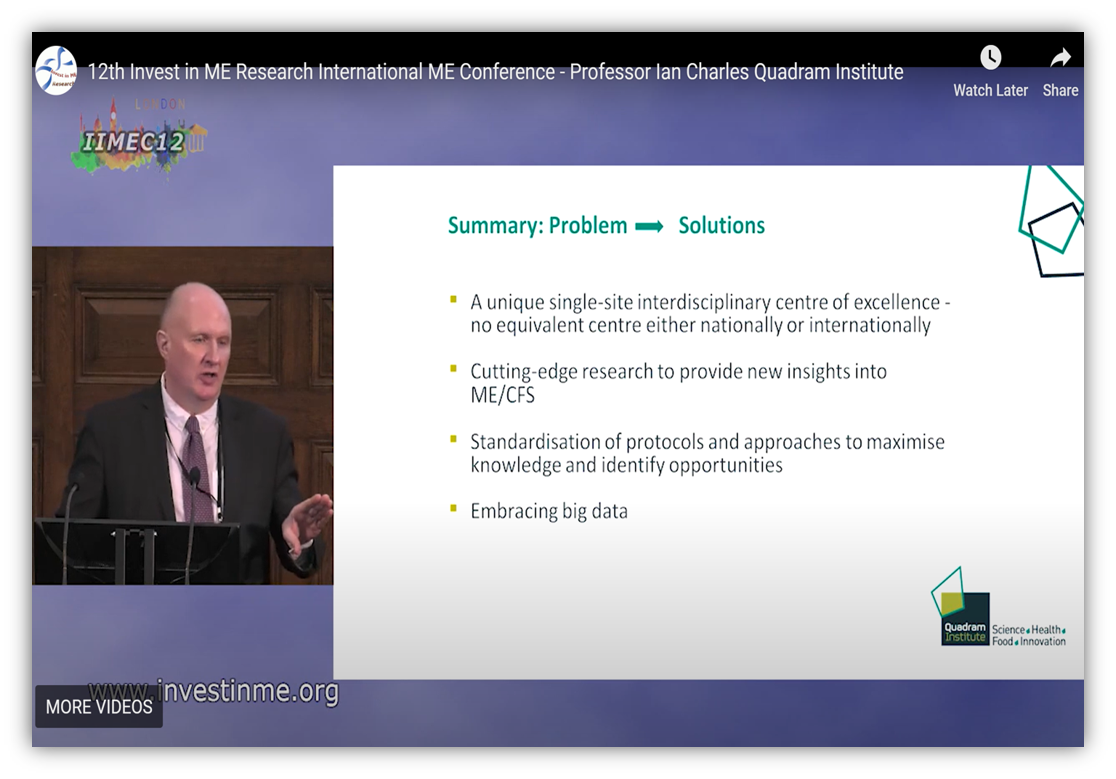 IiMER invited Professor Charles to speak at the international ME conference in 2015 [1], shortly after he took on his role. He returned to speak again in 2017 [2], when Quadram Institute was fully operational. At both conferences, he highlighted the institute’s potential to support the vision for a Centre of Excellence for ME, which aligns with IiMER’s strategy for establishing such a centre.