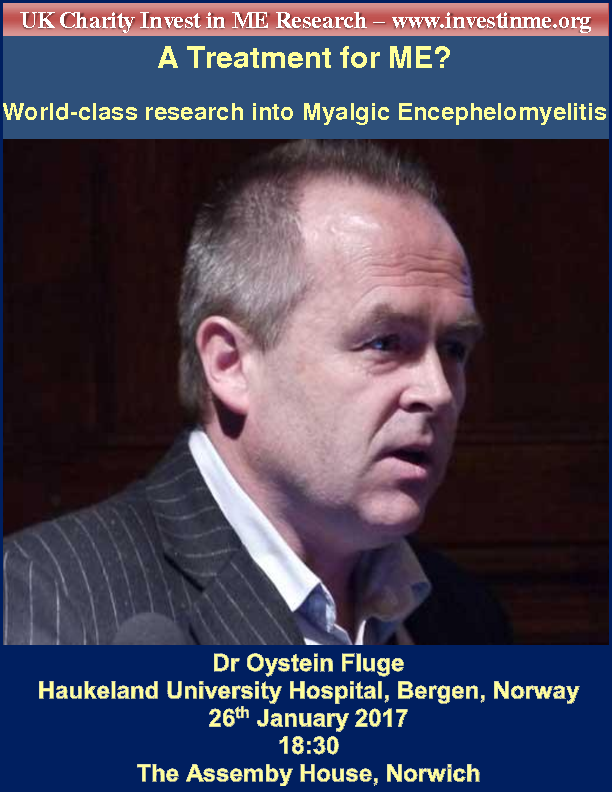 Dr Øystein Fluge from the Haukeland University Hospital in Bergen, Norway will be giving a public presentation on his team's research. The meeting will be in Norwich on 26th January 2017.